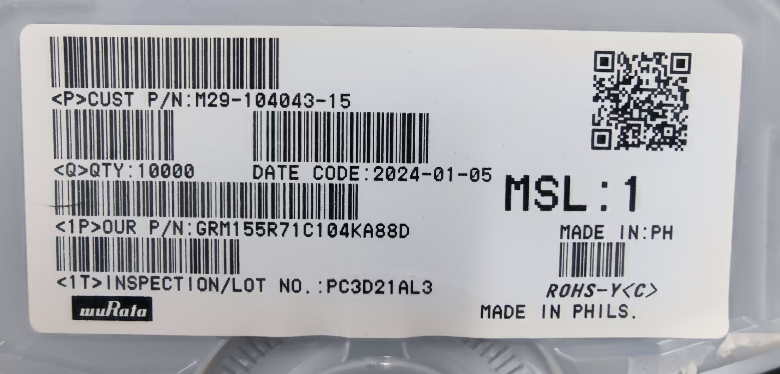 村田100*43 分割符号/GRM188R60J226MEA0D/SV411007A/4000/2024-01-15/CN 料号 GRM188R60J226MEA0D 批次lot SV411007A 数量 4000 10000 DC 2024-01-15 产地 CN 作者:潘茂盛 创建时间:2024-12-29 14:27最后编辑:潘茂盛 更新时间:2024-12-29 14:33