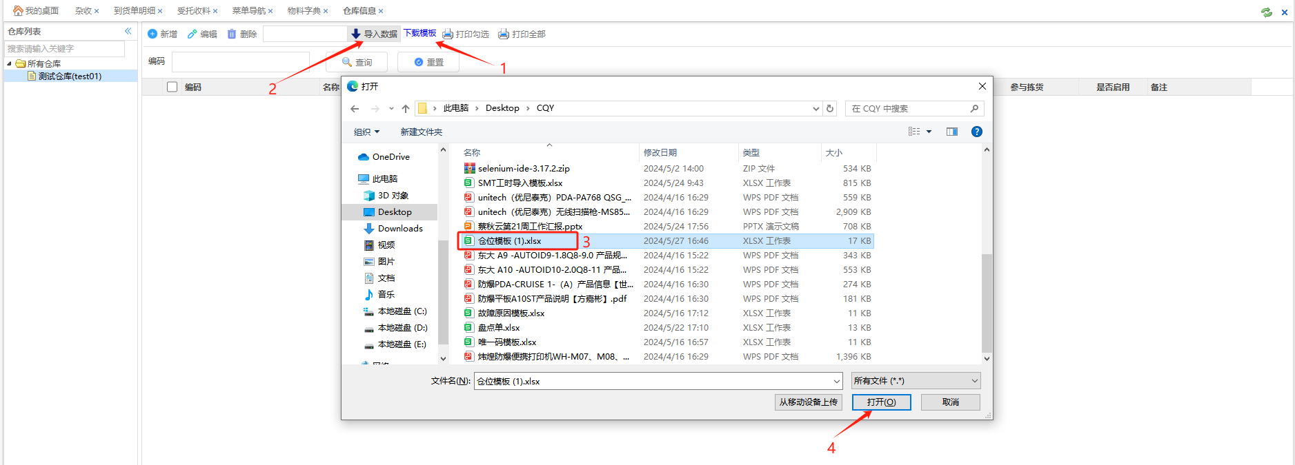 在仓库信息界面,用户可以对现有仓库进行新增、编辑和删除的操作。选择需使用的仓库后,用户可以对仓库内的储位进行新增、编辑和删除的操作。用户在搜索栏输入相应的储位编码可以对相应储位进行快速检索。