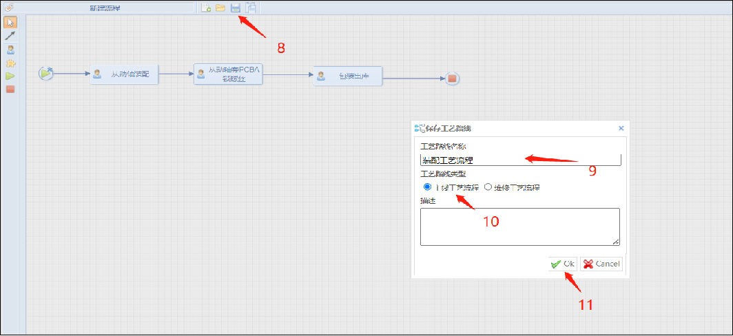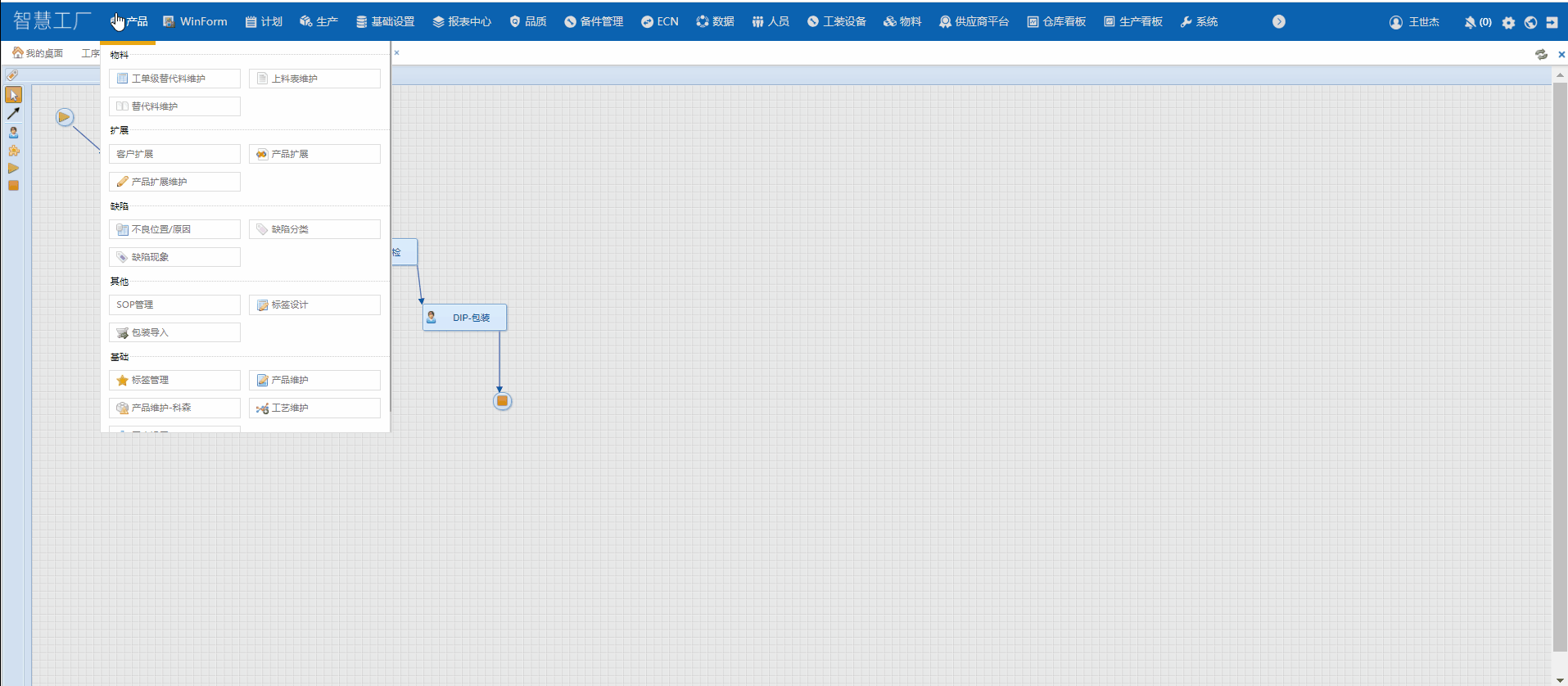 同理按实际生产流程顺序,将所有需在系统中进行流程管控的工序连接。