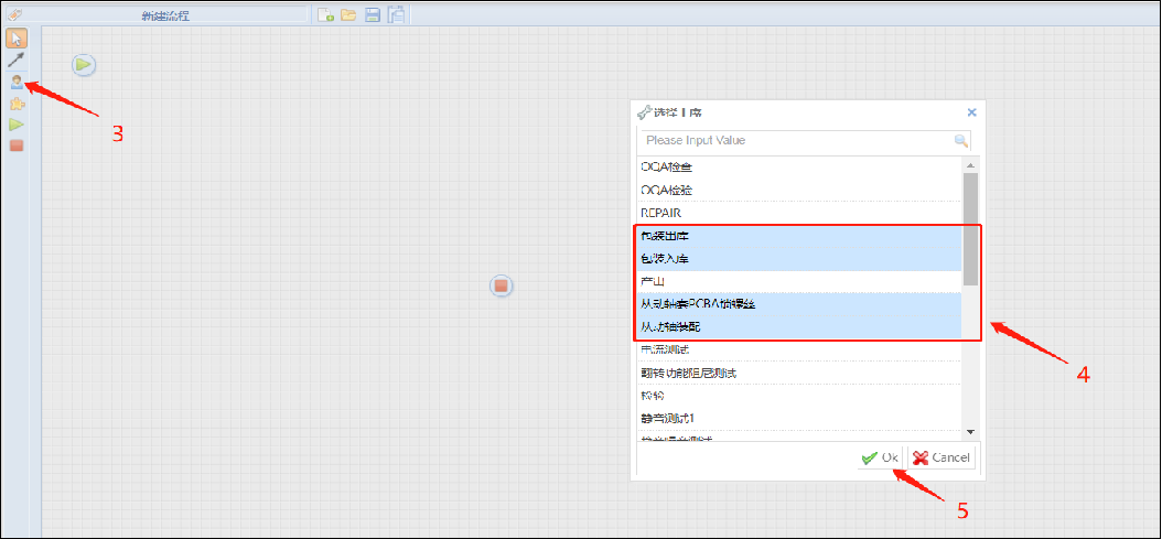 4、搜索框输入需要的的工序名(模糊搜索),在搜索结果中点击选择需要的工序(可多选);