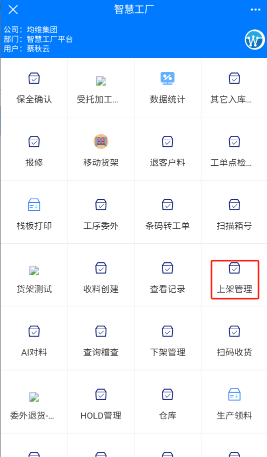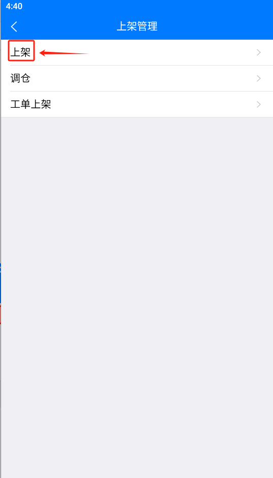 在菜单导航界面选择上架管理,进入上架管理界面,点击上架