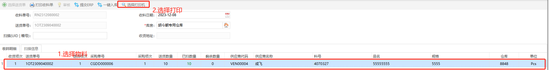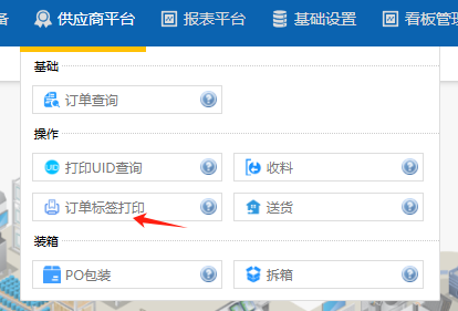在菜单导航下选择收料订单标签打印