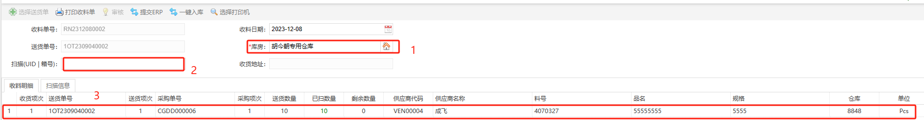 已交数量为ERP已收货数量