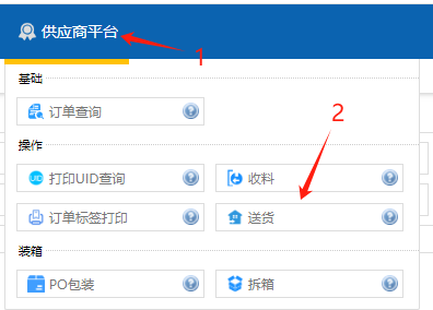 1、选择菜单栏中的【供应商平台】;