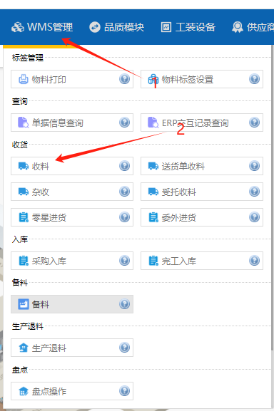 打开收料界面