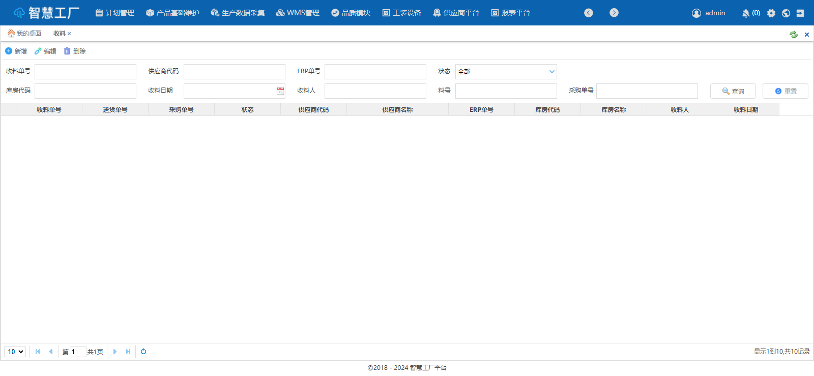 编辑收料单:选择查询出的收料单信息,可选择未提交状态的收料单(2.3),点击【编辑】按钮(2.4)即可进入收料单编辑操作界面。