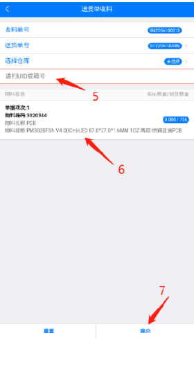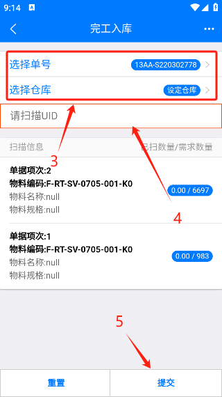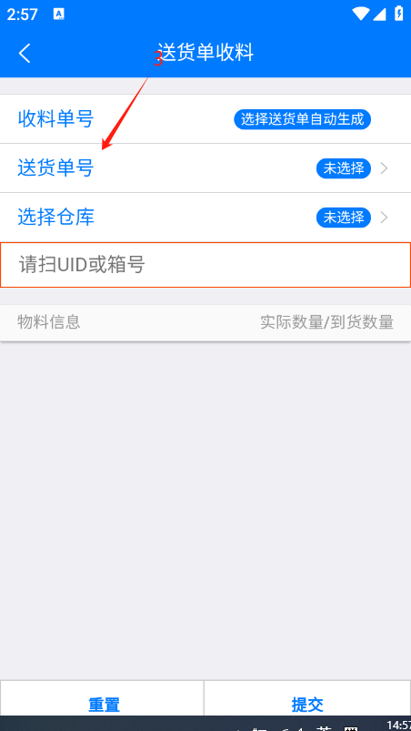 5、在收料界面扫描收料UID条码;