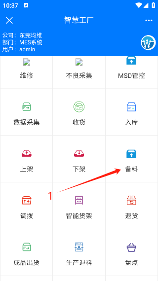 1、点击“备料”,进入备料选择界面。