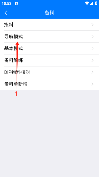 2、在进入导航模式页面后,会直接跳转选择备料单页面,选择需要使用的备料单;