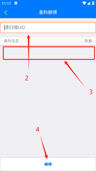 1、点击“备料解绑”,进入备料解绑页面;