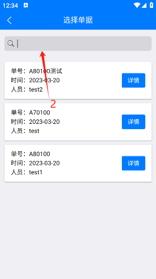 2、进入成品出货页面后,会自动跳转至选择单据页面,输入单号搜索选择单据;