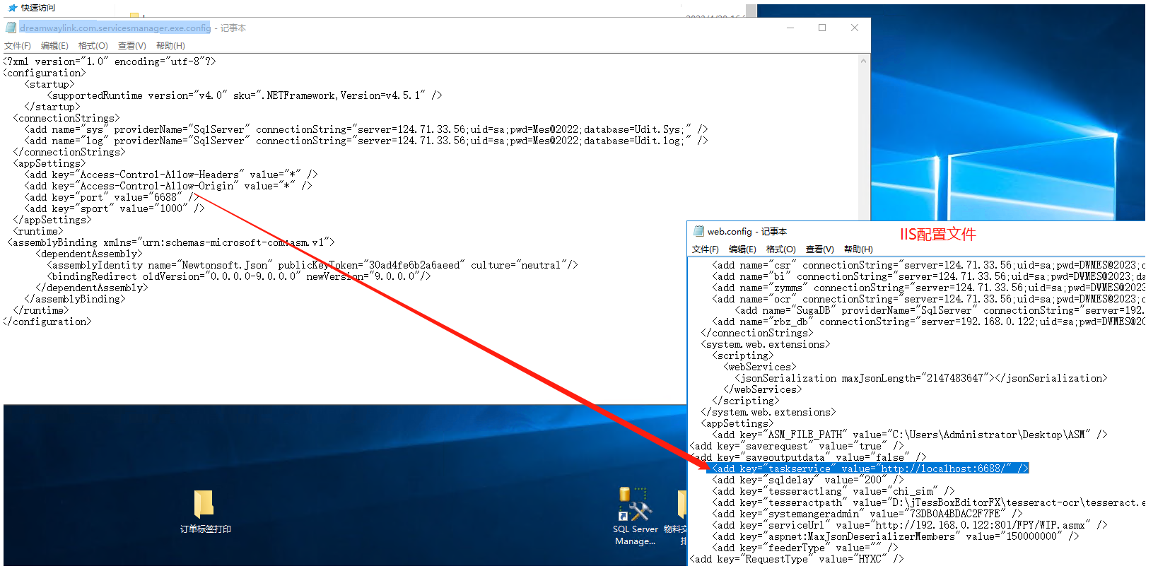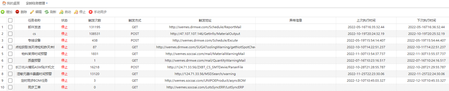 检查配置IIS的webconfig 和 定时任务服务程序的dreamwaylink.com.servicesmanager.exe.config 端口对应