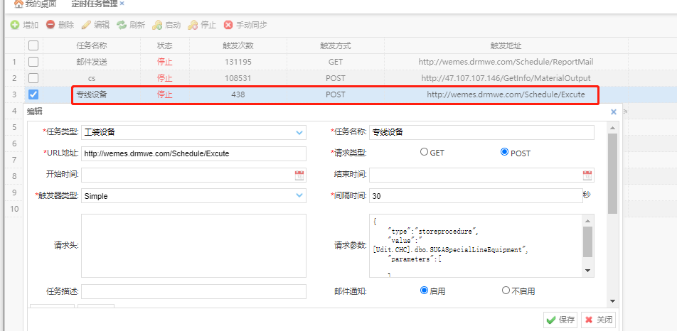 本页面可以配置定时执行任务 、执行API、发送邮件、 执行存储过程、解析文件等操作