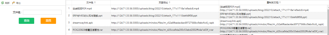 SELECT [file_name] 文件名,'http://124.71.33.56:3000'+replace([file_path],'\','/') 页面地址,'['+[file_name]+']('+'http://124.71.33.56:3000'+replace([file_path],'\','/')+')' 复制到文档