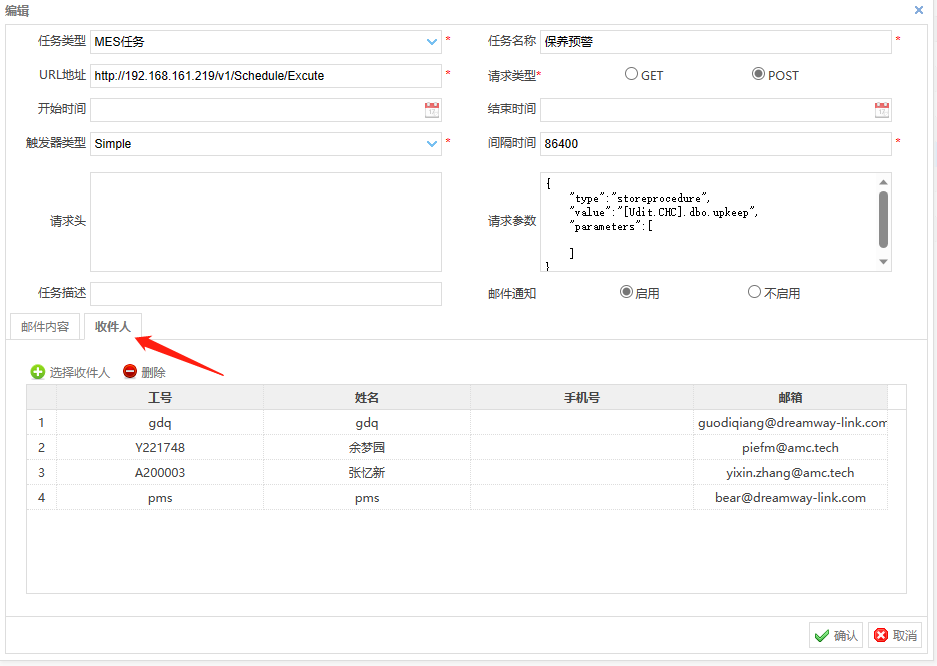 URLhttp://192.168.161.219/v1/Schedule/Excute请求参数