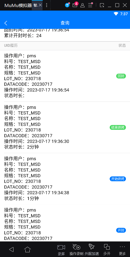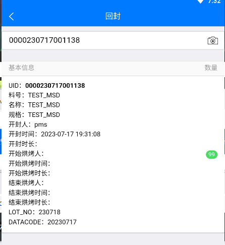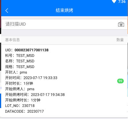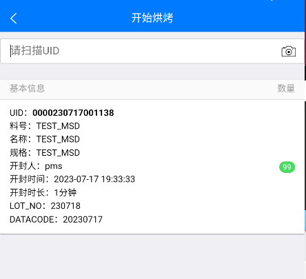 | 物料烘烤记录记录 | 记录开封后烘烤的信息 |