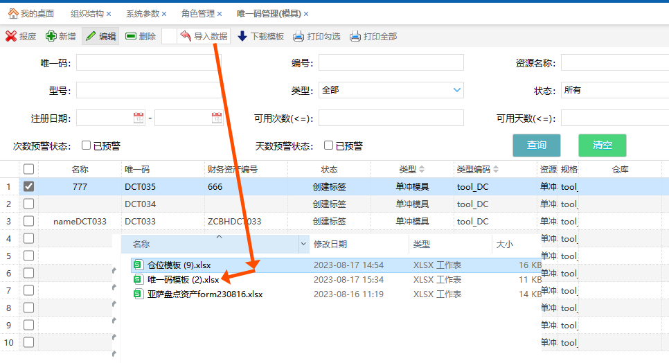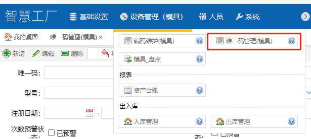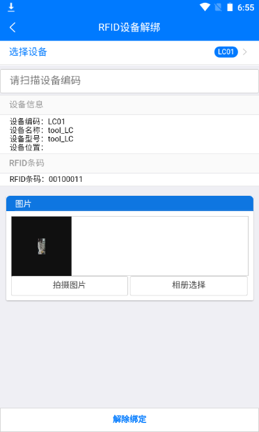 | 解绑 | 扫描模具唯一码或者RFID 进行解绑 建议扫描模具唯一码 以防 | ||||