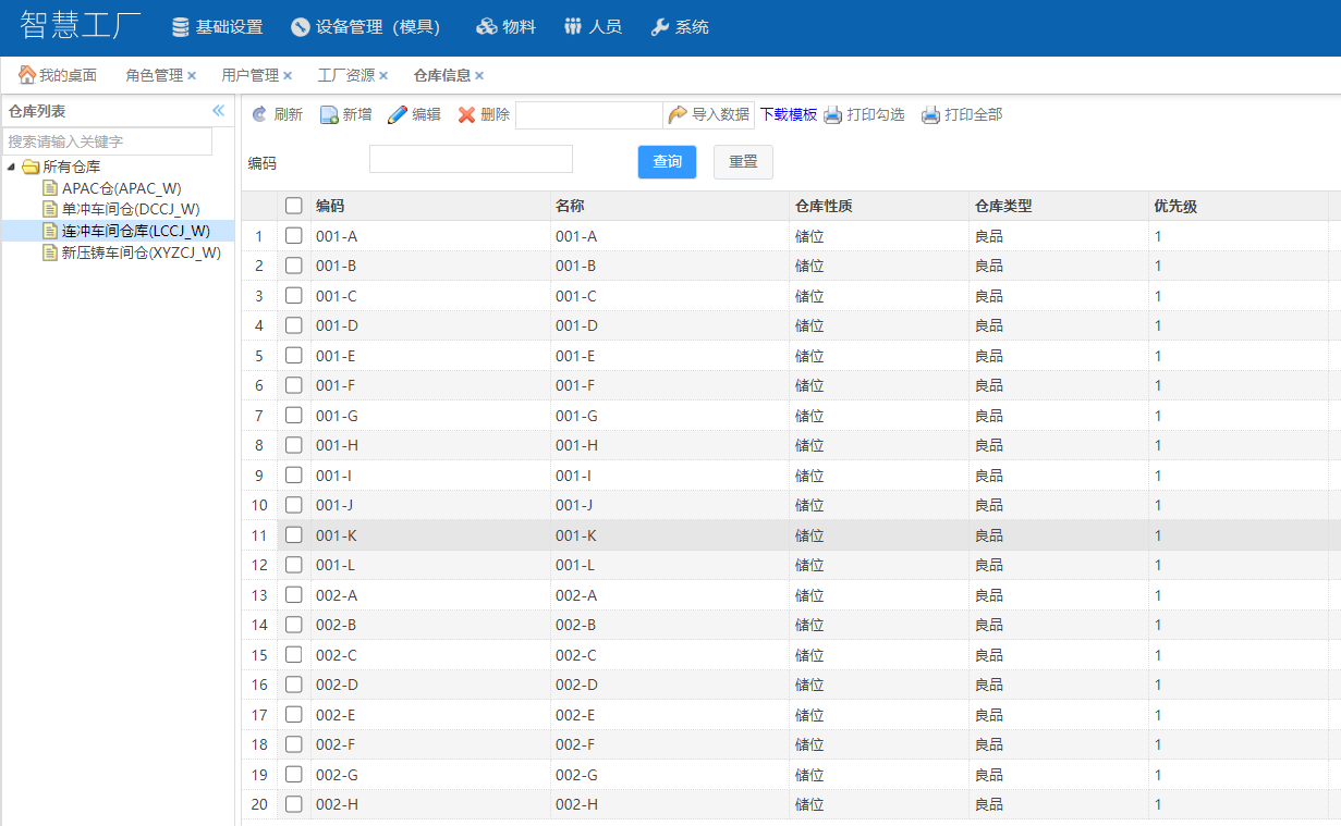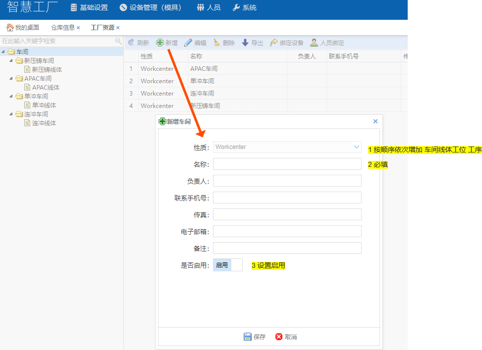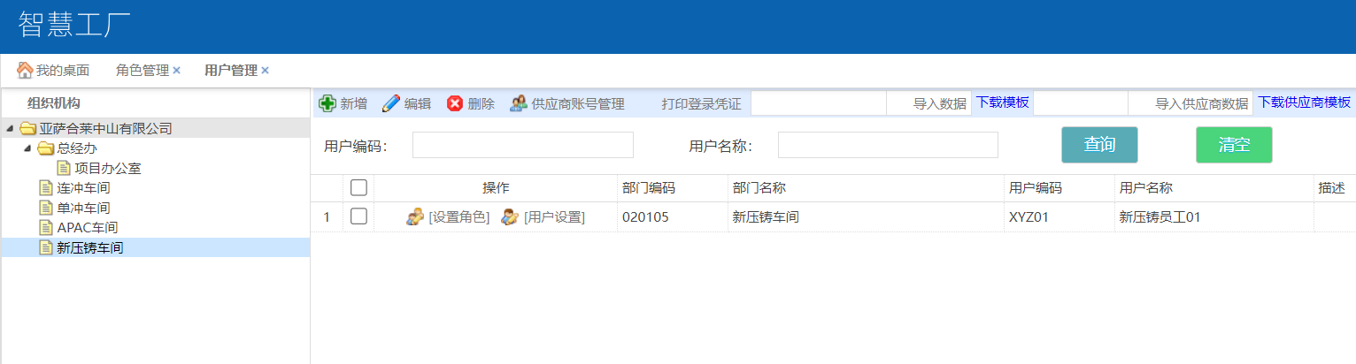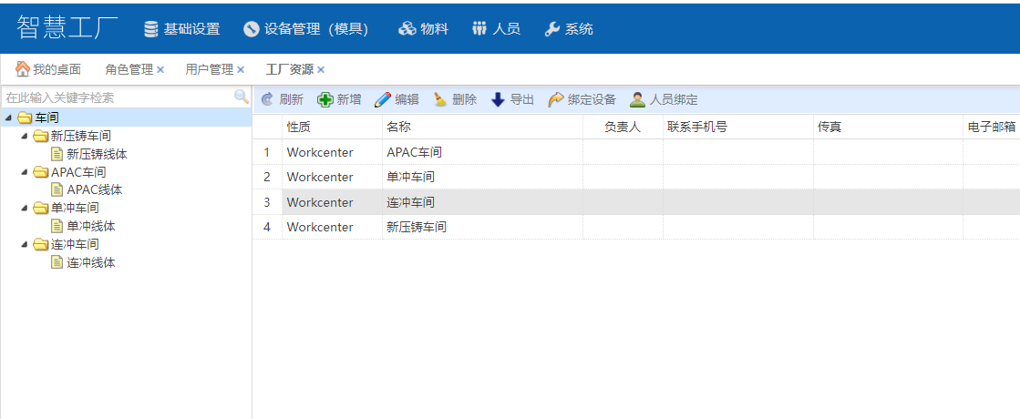 按资产部门分为 连冲 单冲 APAC 新压铸 四个车间部门