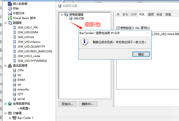 bartender 批量打印1 打印服务检查是不是支持的打印服务差异的更新他 2 设置查询变量3 刷新检查数据库连接 4 检查下载的模板作者:潘茂盛 创建时间:2024-07-10 15:07最后编辑:潘茂盛 更新时间:2025-05-09 11:58