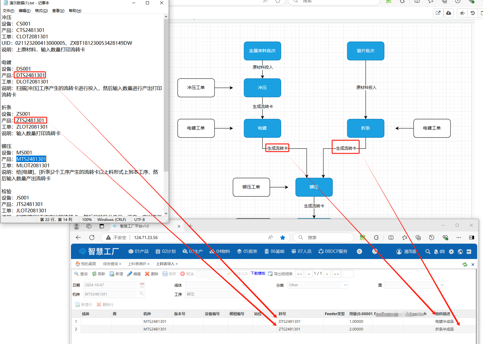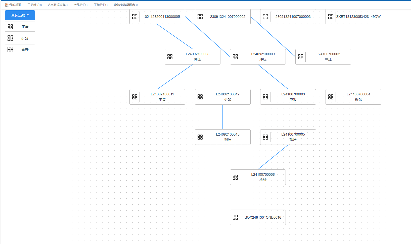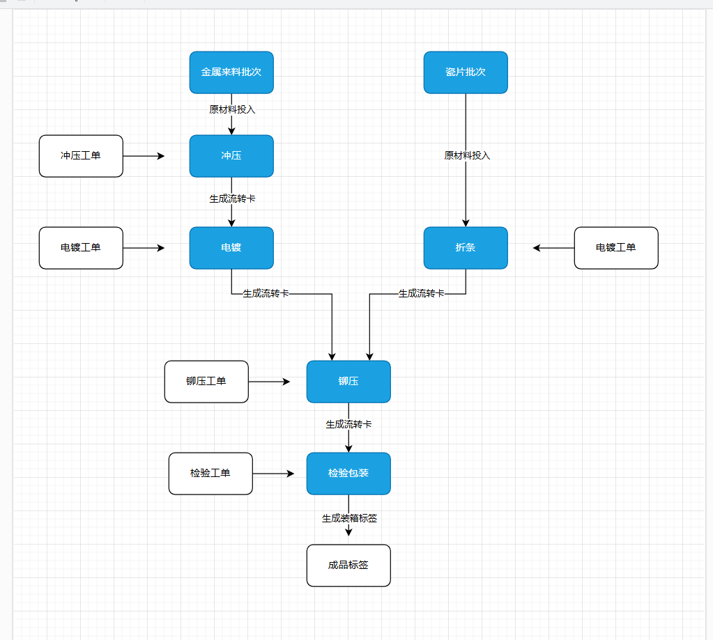 说明:给[电镀]、[折条]2个工序产生的流转卡以上料形式上到本工序,然后输入数量产出流转卡