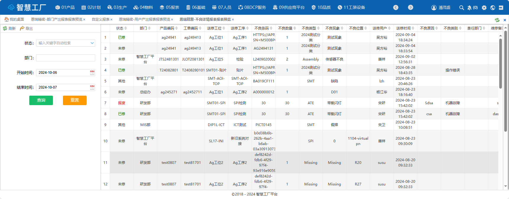 不良详情报表