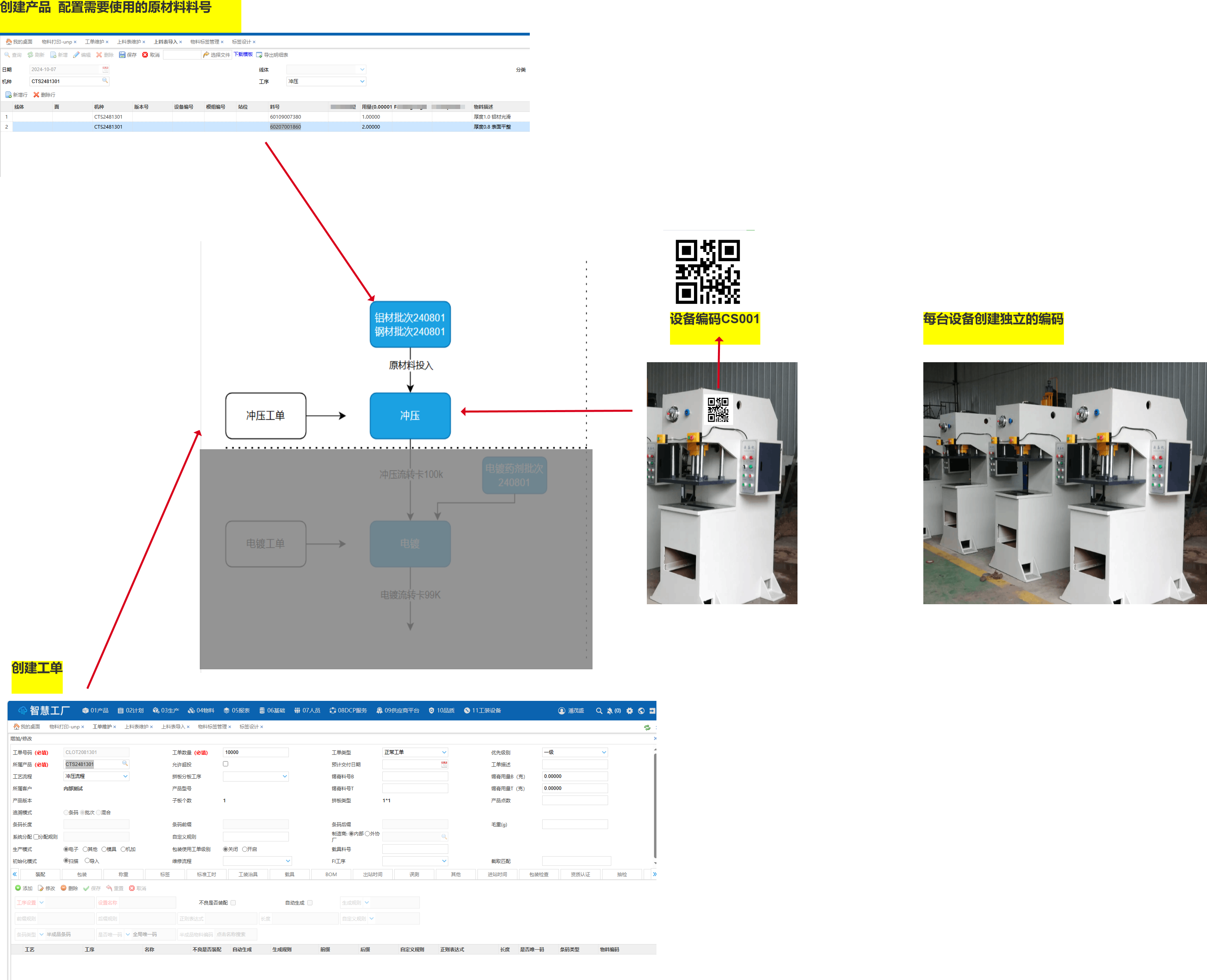 基础设置机台编码,创建产品设置,工单创建