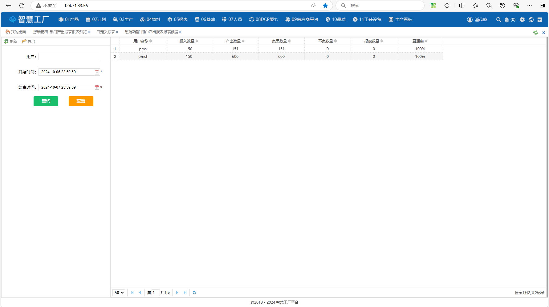 用户产出报表