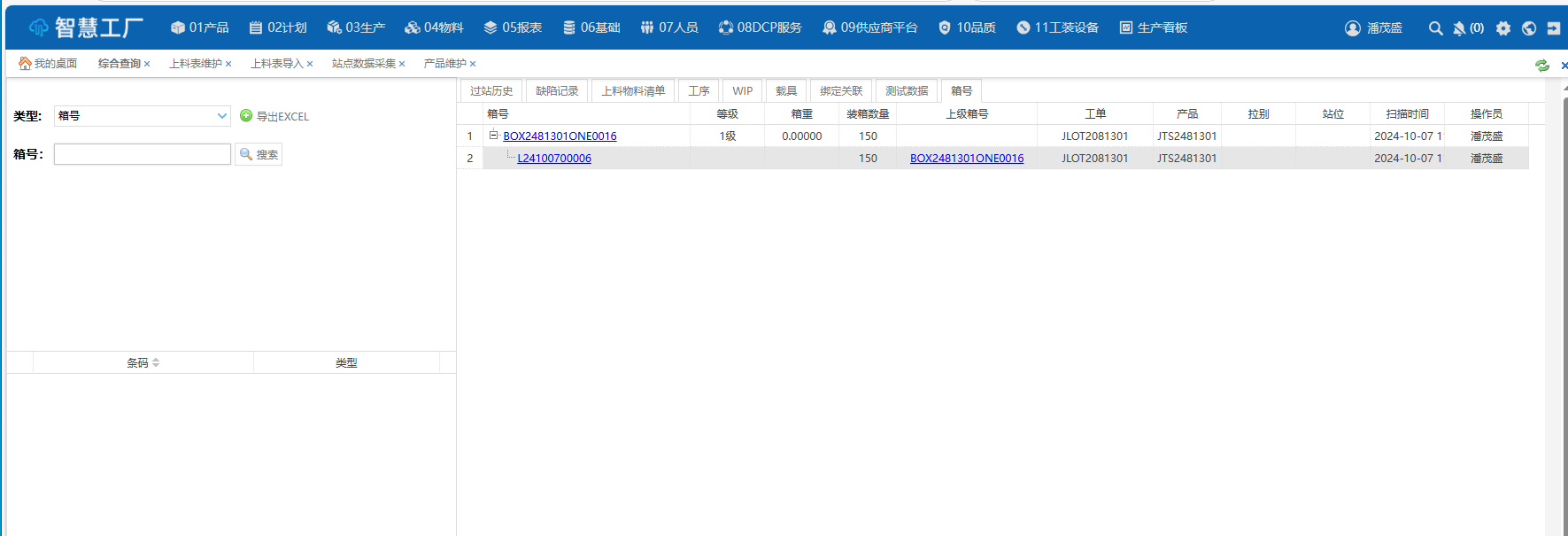 箱号反查生产记录
