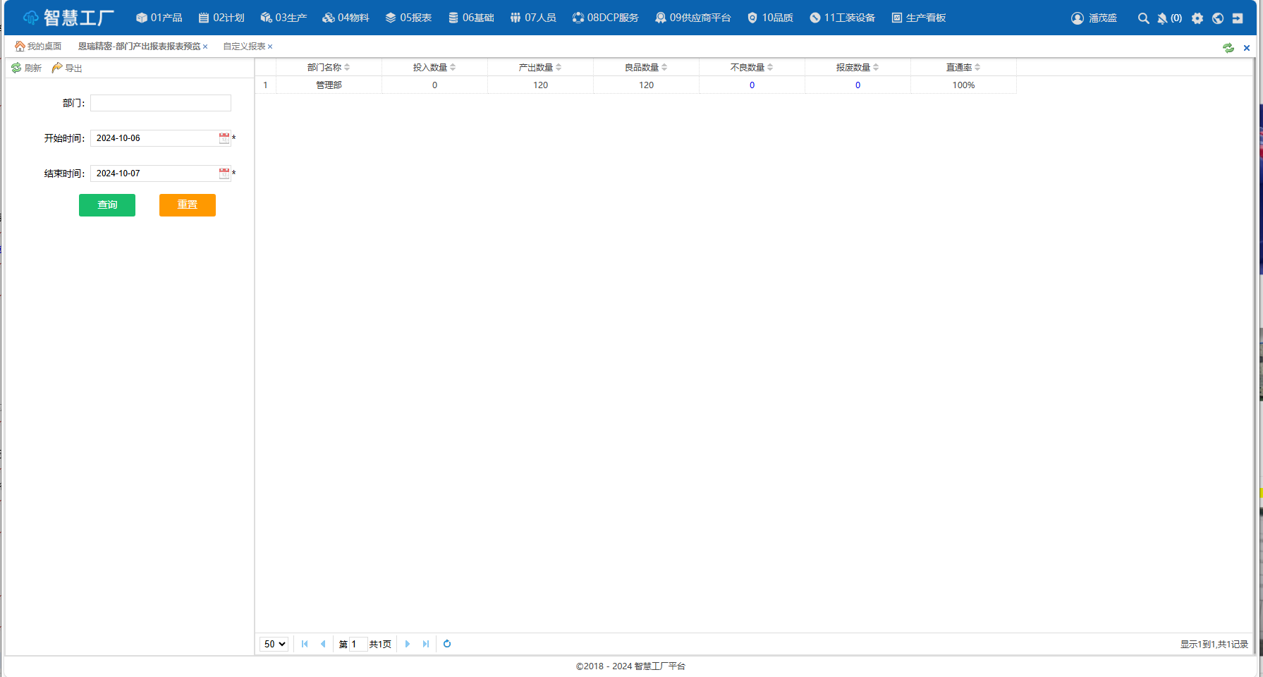 部门产出报表