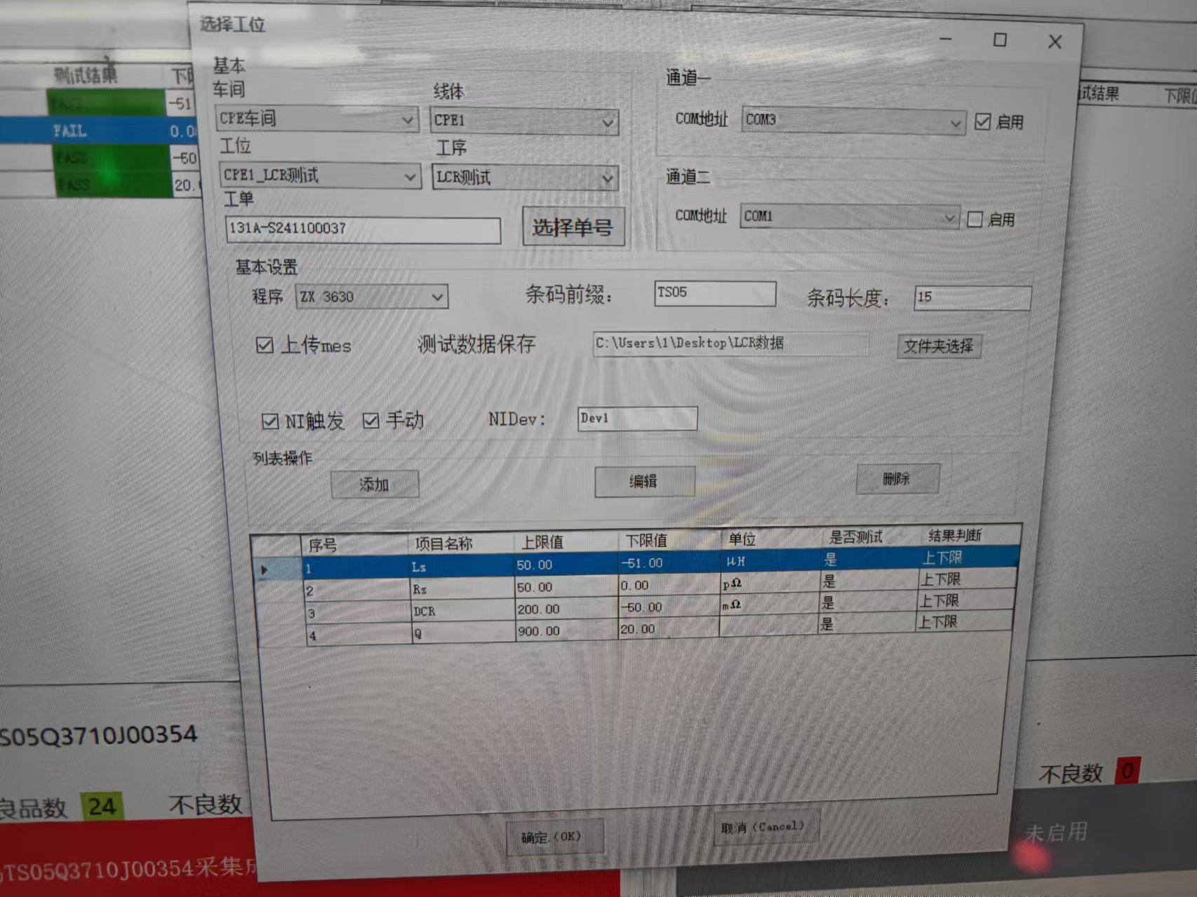 LCR软件操作 配置串口 线体工位工单信息 需要勾选上传MES 和NI触发 天线NIDev扫码测试后 成功和失败均会提交MES 产品设置误差可重复测试多次上传MES的测试数据 LCR一次测试成功的 LCR多次误差失败的 需要维修条码 误测的产品设置 操作参考视频.mp4附件VID_20241126_172410[1].mp4作者:潘茂盛 创建时间:2024-12-02 18:52最后编辑:潘茂盛 更新时间:2025-05-09 11:58