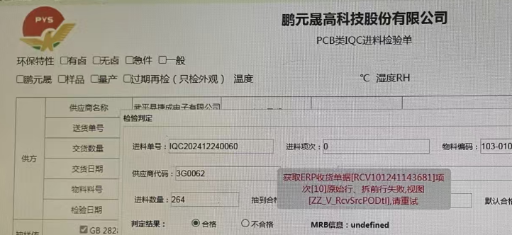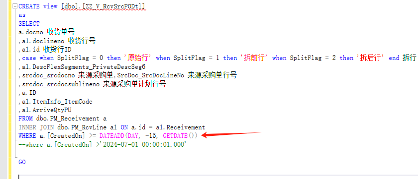 收货要求在15天内昨晚检验和入库,否则数据量大打开页面卡顿变慢 临时处理方式 修改ERP 31.10 的 视图[PYS18U9].[dbo].[ZZ_V_RcvSrcPODtl] 限制条件临时改为30天 完成后再改回来作者:潘茂盛 创建时间:2024-12-24 14:14最后编辑:潘茂盛 更新时间:2025-05-09 11:58
