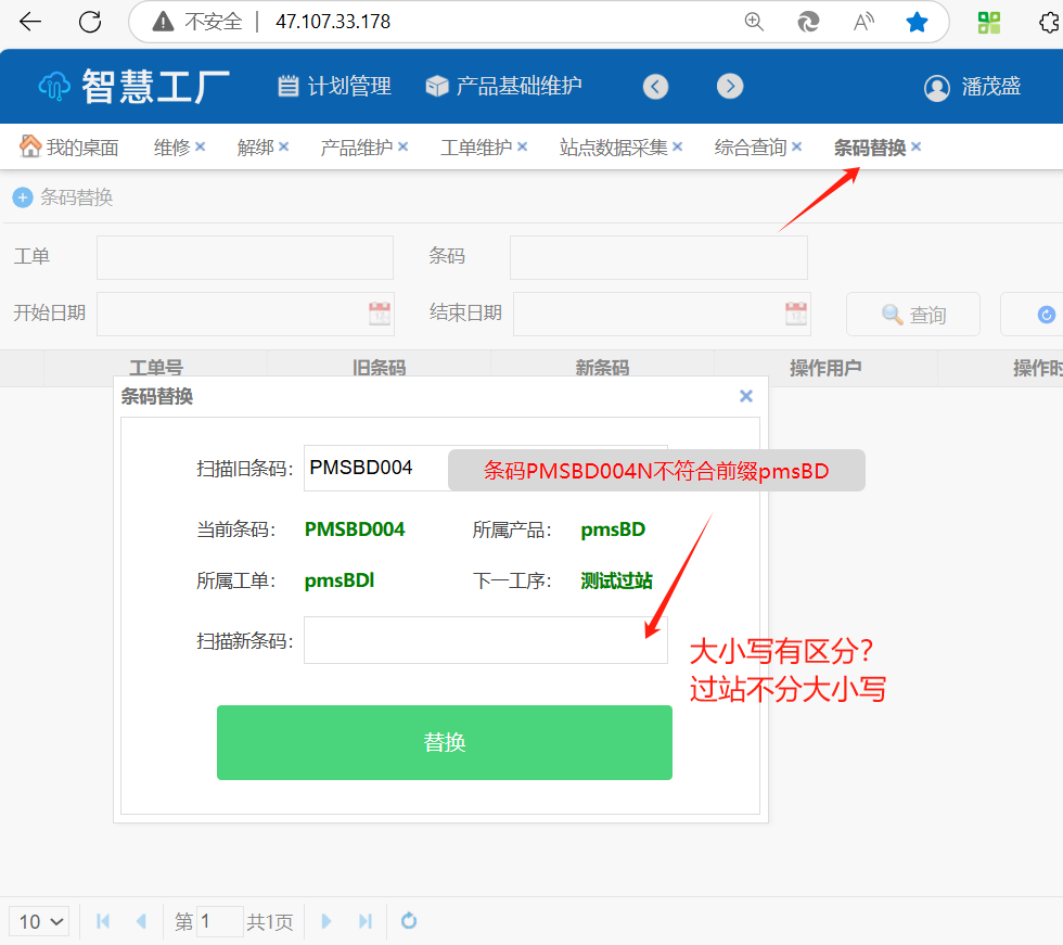 序号 描述 图例 1 47工序保存按钮没有了 2 47维修输入条码回重加载接口 3 条码替换会区分大小写 作者:潘茂盛 创建时间:2024-12-26 10:40最后编辑:潘茂盛 更新时间:2025-05-09 11:58