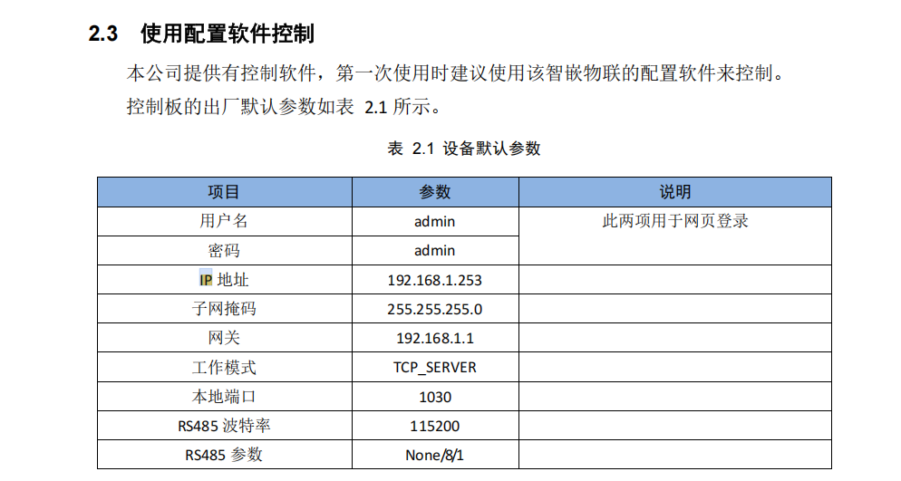 网络继电器(采集器)默认配置