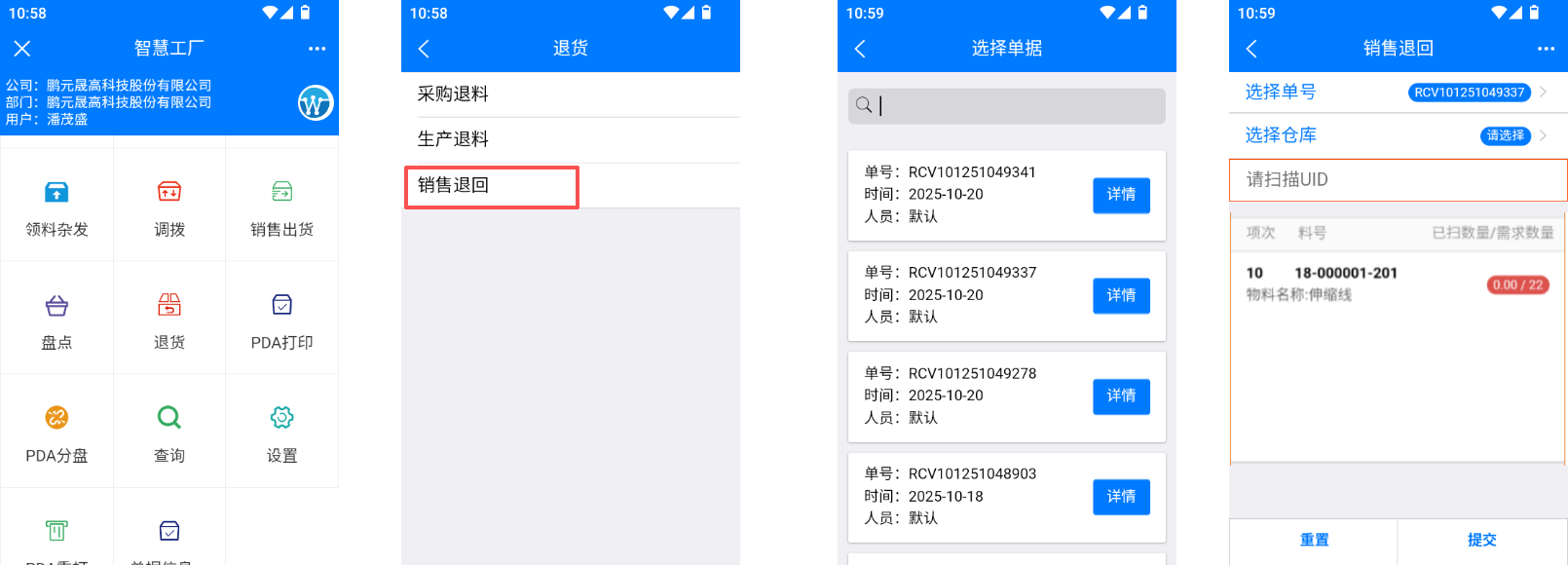 流程在ERP开具审核中的销退单如果有出货的原标签 则扫描原来出货的标签。如果没有标签,需要内部查询销售订单对应的出货记录重打原理的标签 完成后提交单据完成审核作者:潘茂盛 创建时间:2025-10-20 22:55最后编辑:潘茂盛 更新时间:2025-10-20 23:00